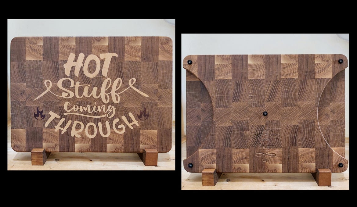 These beautiful boards are made to order and are produced using Hardwoods. All boards are end grain which makes them resilient to knife marks.